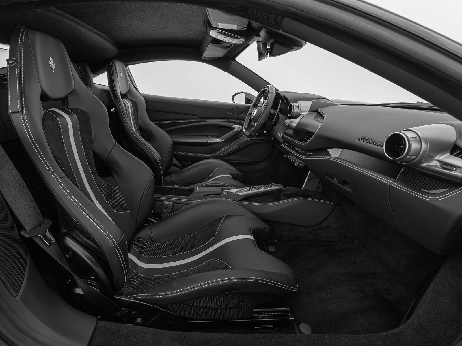 Das Cockpit des Sportwagen bewahrt den klassischen, fahrerorientierten Stil der Mittelmotor-Berlinettas. Alle Komponenten wurden für den Ferrari F8 Tributo neu entworfen. Das Lenkrad mit eingebauten Bedienelementen ist der neuste Stand der Technik und die Daytona Sitze ein echter Hingucker. Der 7-Zoll Touchscreen auf der Beifahrerseite, verleiht dem Innenraum einen besonders sportlichen Touch und lässt den Beifahrer Ferrari F8 mieten hautnah erleben.