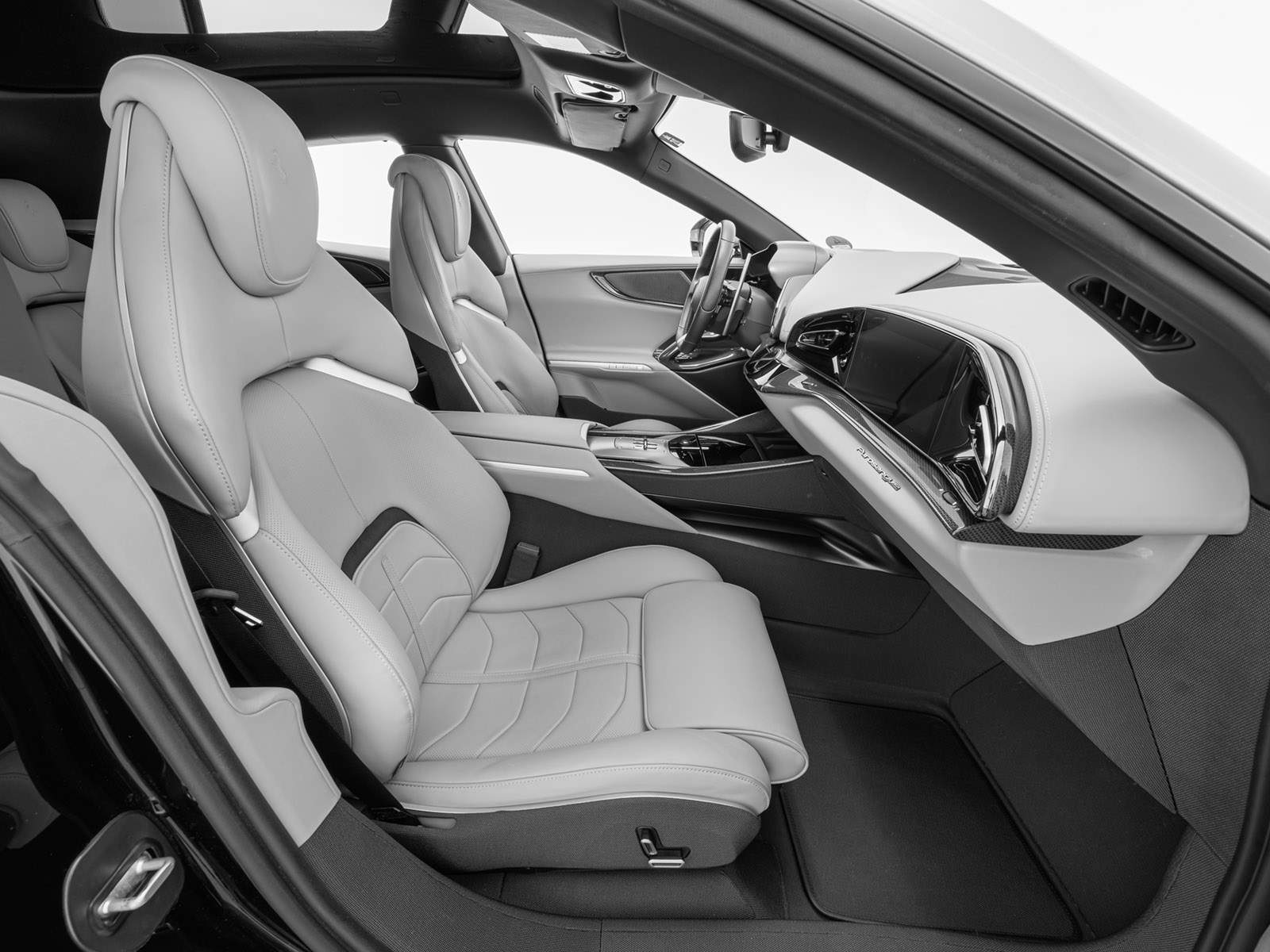 Die Kabine wirkt wie eine äußerst elegante, sportliche Lounge: Bei geöffneten Türen offenbart sich ein überraschend großzügiges Raumangebot. Ebenso überraschend ist der raffinierte Luxus des Innenraums, der beim Ferrari Purosangue mieten ein Gefühl von Eleganz und Modernität ausstrahlt. Moderne Designsprache verbindet sich harmonisch mit der für Ferrari typischen Ästhetik eines GT-Sportwagens. Alle Formen sind bewusst kompakt gehalten, um sowohl den verfügbaren Raum als auch die Ergonomie zu optimieren.